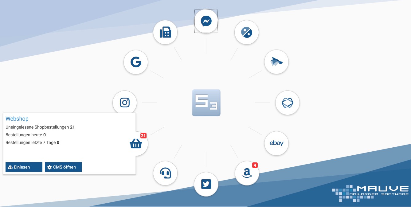 Markterfolg für Apotheken durch kanalübergreifende Kundenansprache. Kunden unterscheiden nicht mehr zwischen Online- und Vor-Ort-Apotheken, sondern nutzen die unterschiedlichsten Kanäle zur Information und für Bestellungen. Das Mauve S3/100 bietet Apothekern eine zentrale Schaltstelle für alle Kommunikations-, Bestell- und Absatzkanäle und bündelt alle aktuellen, relevanten Social Media- und Messenger-Dienste, Apotheken-Portale und –Shops, Preissuchmaschinen und Apps unter einer Oberfläche. Angebote platzieren, Aufträge entgegennehmen und verarbeiten, Informationen verbreiten, Verkaufsförderung kanalübergreifend steuern – alles mit wenigen Klicks über das Mauve Wheel des Mauve S3/100.