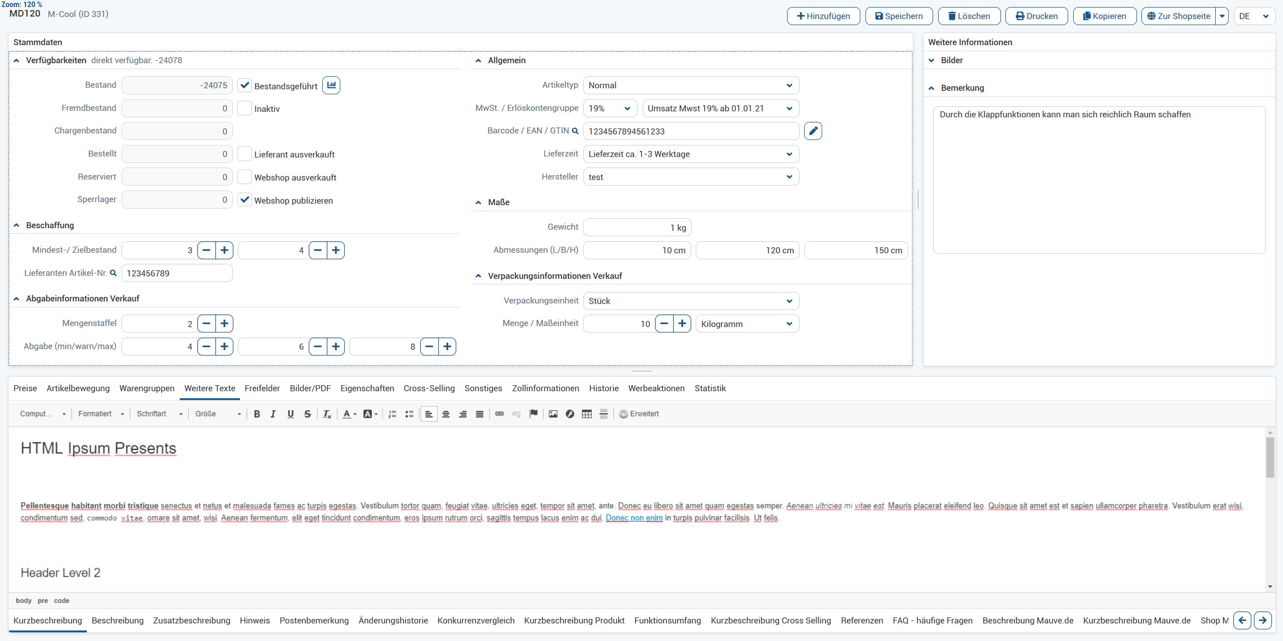 Das neue Design ermöglichte es jetzt auch, nur die Funktionen einzublenden, die für die Arbeit mit dem System wichtig sind. Alles andere kann platzsparend eingeklappt werden. Zudem wird jetzt zwischen Informationen, die man nur lesend wahrnehmen will und Informationen, die häufig geändert werden und somit direkt editierbar sein müssen, unterschieden. Das neue Design unterstützt jetzt viel besser eine höhere Monitorauflösung durch optimierte Darstellung der Inhalte und die zusätzliche Zoom-Funktion (mit Strg + und - oder über Strg und Mausrad) ermöglicht die Skalierung der Inhalte. Anwendern, denen eine größere Monitorfläche zur Verfügung steht, werden jetzt mehr Inhalte angezeigt. Zudem wurde die Joker-Suche erweitert und die Posten (früher F11) wurden in den Reiter Belege (F8) integriert.