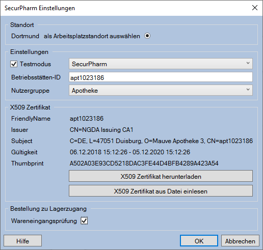 Wann genau das Zertifikat abläuft, können Mauve-Kunden im Mauve System3 unter dem Menüpunkt Apotheke / SecurPharm / Einstellungen feststellen. Die Verlängerung des securPham-Zertifikats erfolgt bei der Netzgesellschaft Deutscher Apotheker mbH (NGDA). Der nachfolgende Link beschreibt detailliert den Prozess, wie das Zertifikat verlängert werden muss: https://ngda.de/anleitung-ngda-p/anleitung-zertifikatsverlaengerung.php